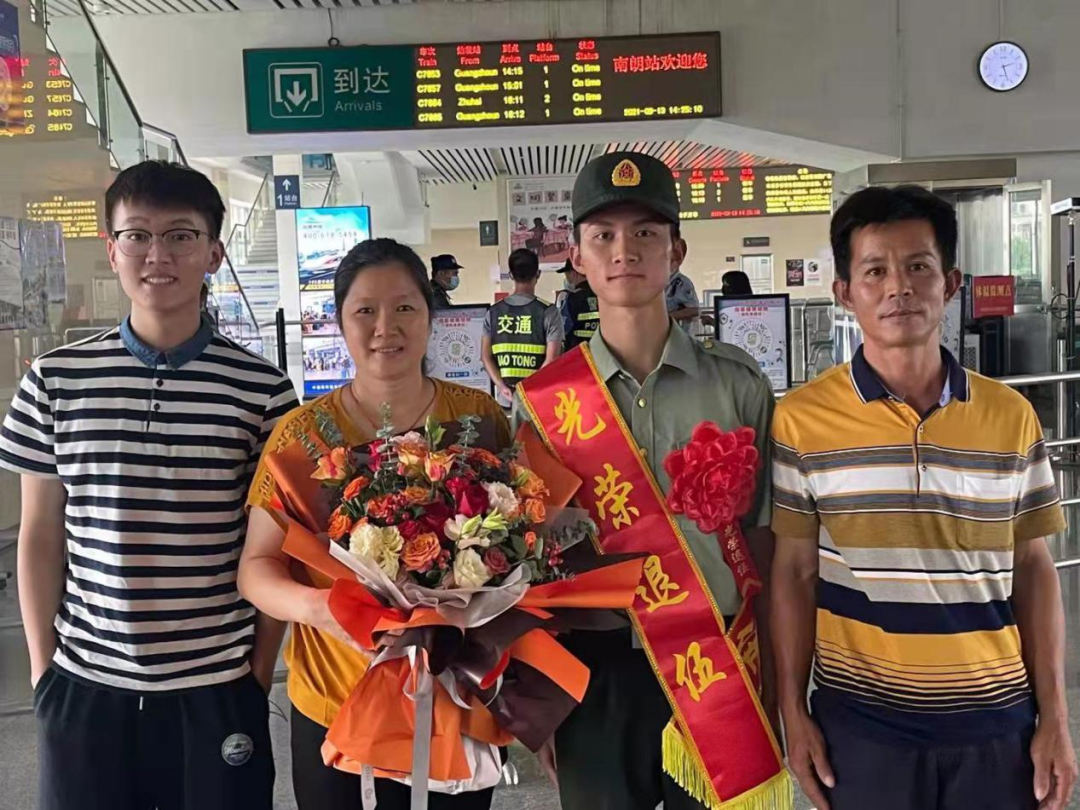 “去時(shí)鑼鼓喧天,歸來(lái)夾道歡迎?!?/p> 九月,正是退役軍人 從祖國(guó)各座軍營(yíng) 返回家鄉(xiāng)的退役季 為營(yíng)造“一次參軍、一生光榮”的濃厚氛圍 讓退役軍人感受到家鄉(xiāng)人民的熱情和關(guān)懷 激發(fā)老兵退伍不褪色 返鄉(xiāng)建新功的壯志熱情 9月13日下午,五桂山街道2021年首位退役軍人曾世紀(jì)光榮退役返鄉(xiāng)。街道退役軍人服務(wù)中心負(fù)責(zé)人、社區(qū)“兩委”干部、工作人員以及曾世紀(jì)的父母早早手持鮮花,在城軌南朗站等候迎接世紀(jì)回家。 回想2019入伍歡送大會(huì)時(shí)曾世紀(jì)代表五桂山即將入伍的新兵作表態(tài)發(fā)言,那年,他主動(dòng)請(qǐng)纓,到艱苦邊遠(yuǎn)地區(qū)服役?!皡④姴粌H是個(gè)人的榮耀,也是家人的榮耀,更是鄉(xiāng)親們的榮耀。到了部隊(duì)后我會(huì)堅(jiān)決服從命令,聽(tīng)從指揮,刻苦訓(xùn)練,勤學(xué)本領(lǐng),絕不辜負(fù)家鄉(xiāng)人民的期望!”