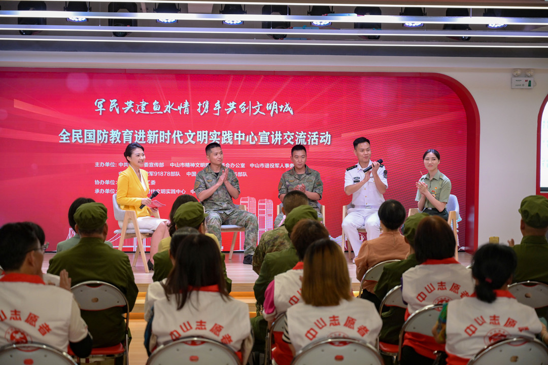 5月18日下午,全民國防教育進(jìn)新時代文明實踐中心宣講交流活動在中山市民眾街道新時代文明實踐中心舉行,退役軍人代表、基層群眾、村干部以及受邀出席的中國人民解放軍91878部隊、69316部隊官兵代表等200余人參加活動。  活動現(xiàn)場。記者 易承樂 攝