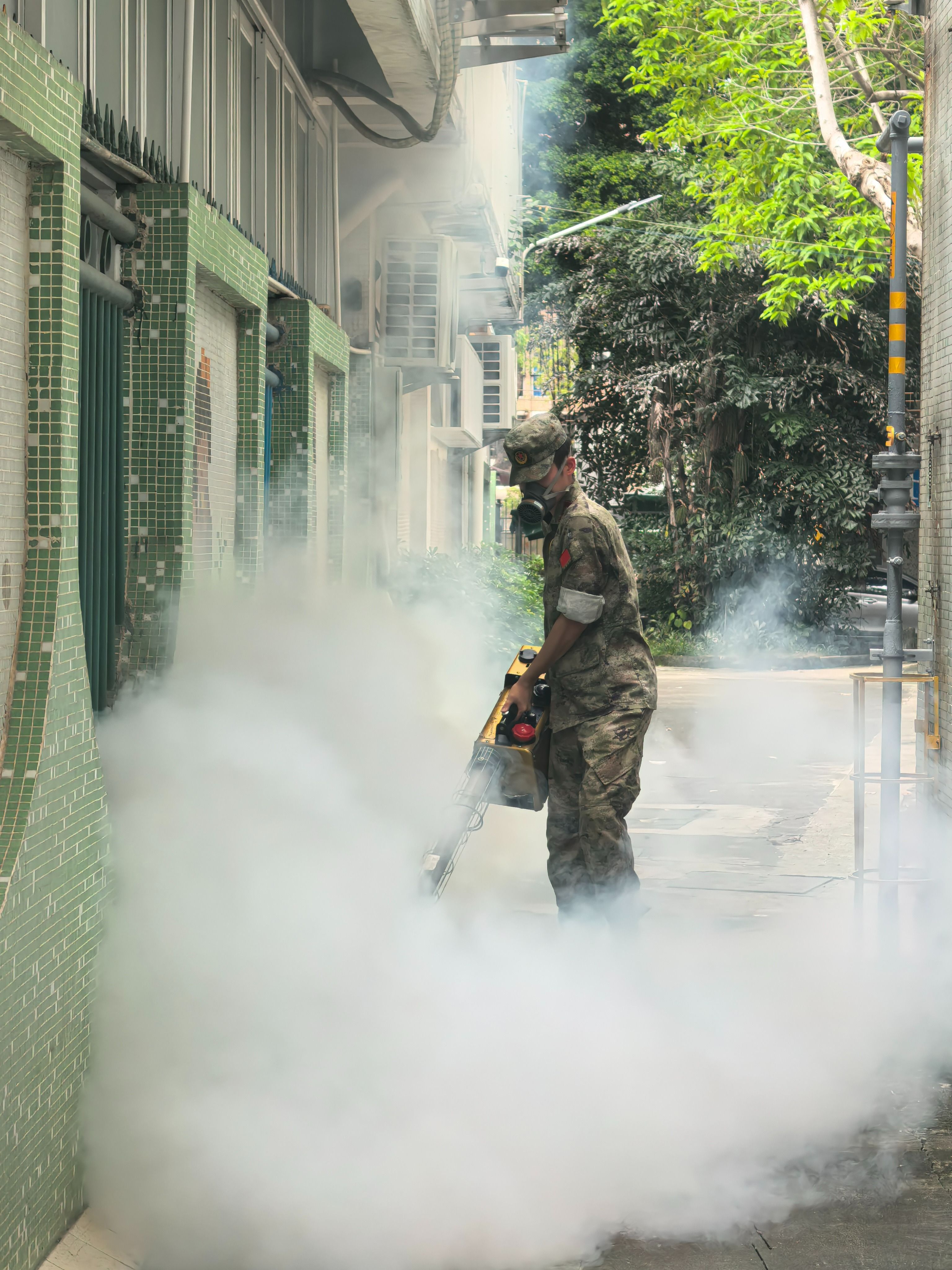 背著20公斤的消殺設(shè)備穿梭在閑置房屋,手持宣傳單走遍商鋪樓宇,連續(xù)12天日均工作10小時……8月7日一大早,南朗街道基干民兵孫桂濱便開啟了忙碌的一天:滅蚊消殺、清理整治蚊媒孳生地、入戶排查。防護(hù)服下,他的迷彩T恤已被汗水浸濕,電動噴霧器的嗡鳴聲成為社區(qū)最安心的旋律。