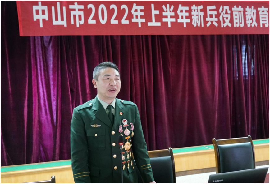 槍林彈雨、硝煙彌漫、炮火連天、電臺(tái)收發(fā)上萬組零差錯(cuò)……曾獲“廣東好人”“廣東省愛國擁軍模范”“中山市道德模范”等諸多榮譽(yù)的退役軍人李克將自己在邊境自衛(wèi)反擊戰(zhàn)中親身經(jīng)歷娓娓道來,讓大家仿佛身臨其境?!澳銈兌际莾?yōu)秀的青年,穿上軍裝保家衛(wèi)國,希望你們到部隊(duì)后聽黨話、跟黨走,刻苦訓(xùn)練、不怕犧牲?!?/p>