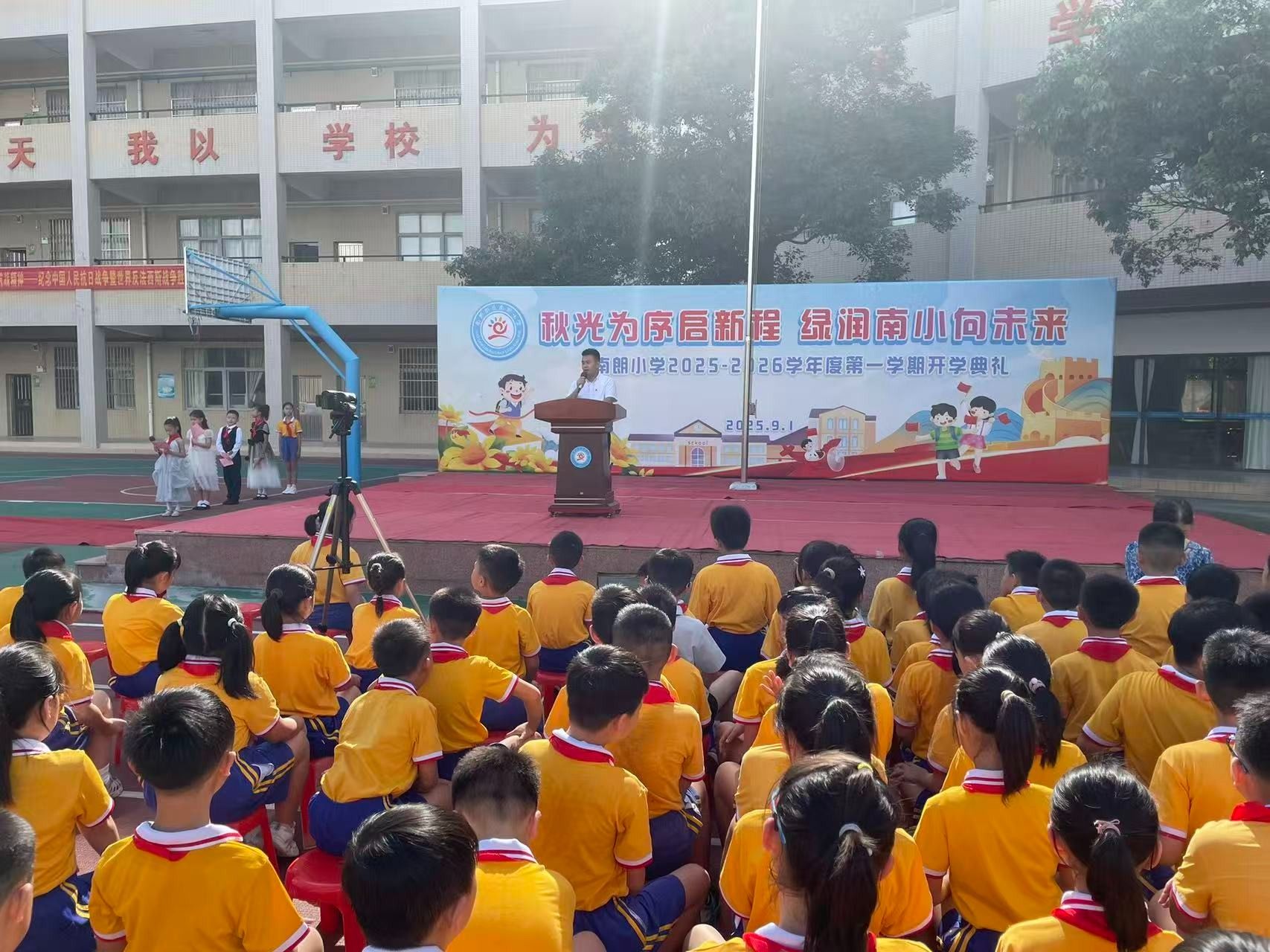 9月1日,中山南朗街道南朗小學(xué)舉行秋季學(xué)期開學(xué)典禮。開學(xué)典禮以紀念中國人民抗日戰(zhàn)爭暨世界反法西斯戰(zhàn)爭勝利80周年為主題,把愛國主義教育作為新學(xué)期的“開學(xué)第一課”,帶領(lǐng)同學(xué)們回望烽火歲月,弘揚偉大抗戰(zhàn)精神。 南朗街道南朗小學(xué)黨支部書記、校長杜少君為同學(xué)們講述了可歌可泣的抗戰(zhàn)故事。簡文祥 攝開學(xué)典禮上,南朗街道南朗小學(xué)黨支部書記、校長杜少君以《銘記偉大勝利,傳承抗戰(zhàn)精神——紀念中國人民抗日戰(zhàn)爭暨世界反法西斯戰(zhàn)爭勝利80周年》為題,講述了可歌可泣的抗戰(zhàn)故事,為全體師生上了一堂生動的思政第一課。 92歲的老校長程民興受邀來到學(xué)校,他以親歷者的身份為同學(xué)們講述校園經(jīng)歷的抗戰(zhàn)故事。簡文祥 攝南朗小學(xué)的前身是安定學(xué)校,也是1943年南朗安定戰(zhàn)斗的核心遺址?;顒赢斎?,92歲的老校長程民興受邀來到學(xué)校,他以親歷者的身份為同學(xué)們講述校園經(jīng)歷的抗戰(zhàn)故事,讓過去的歷史多了份可觸的溫度。“日本飛機轟炸安定學(xué)校時,瓦片碎裂的聲響至今仍在耳畔回響,那次轟炸,我險些沒能活下來?!彼嬖V同學(xué)們,日寇占據(jù)安定學(xué)校后,把兩層教學(xué)樓改造成堡壘,墻外布滿帶刺的鐵絲網(wǎng),槍口日夜對著村口;那時他就躲在閣樓里,親眼看見二樓窗口常年架著機槍,夜里探照燈掃過田野時,全村人都屏息凝神,不敢發(fā)出半點聲響。 如今,程民興的兒女們在國外生活,孩子們想要接他出國,但他卻執(zhí)意留在國內(nèi)。他告訴同學(xué)們:“你們看,咱們現(xiàn)在的日子多好啊——吃的、用的樣樣齊全,出門不管是坐車還是騎車,去哪兒都特別方便;再瞧瞧你們的校園,環(huán)境優(yōu)美,設(shè)備先進。同學(xué)們一定要珍惜這么好的學(xué)習(xí)環(huán)境,認真讀書,增長本領(lǐng),祖國的建設(shè)以后就要靠你們了?!?/p> 杜少君帶領(lǐng)孩子們到南朗小學(xué)操場保留的帶彈孔的殘墻,講述抗戰(zhàn)往事。簡文祥 攝 活動最后,杜少君特意帶領(lǐng)孩子們到南朗小學(xué)操場保留的帶彈孔的殘墻,觸摸那些深淺不一的彈痕。他指向殘墻旁生長的綠植說道:“這片曾被戰(zhàn)火灼燒的土地,如今已長出繁榮的新綠。烈士們用生命守護的家園,正在一代代人的手中變得更好?!庇|摸彈痕的那一刻,同學(xué)們仿佛在與歷史對話:傳承偉大抗戰(zhàn)精神,不是一句口號,而是要接過前輩的接力棒,在新時代為家鄉(xiāng)、為祖國奮斗。 校園操場、紅色地標、親歷者、戰(zhàn)斗遺址串聯(lián)起一堂行走的思政課。杜少君說:“讓孩子們在歷史現(xiàn)場觸摸過去,才能真正理解‘銘記’的意義。偉大抗戰(zhàn)精神的傳承,就藏在每一次駐足、每一次傾聽、每一次思考里?!?/p> 通訊員:于銳 簡文祥 ◆編輯:吳玉珍◆二審:鄭沛鋒◆三審:周亞平 文盾校對——用科技,守文字 |