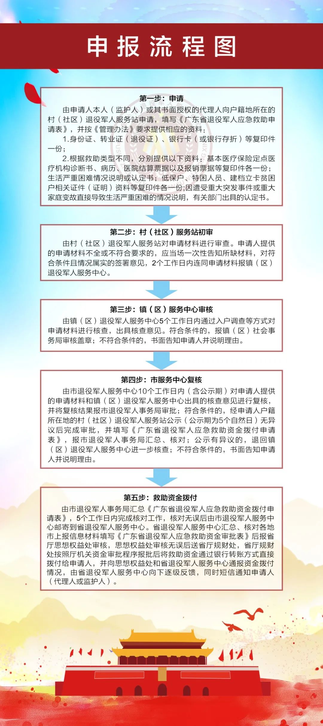廣東省退役軍人應(yīng)急救助資金自2019年7月設(shè)立以來,為我市退役軍人及其他優(yōu)撫對象提供了有力的幫扶援助。 其救助類型主要分為四類:申請人因患重大疾病、發(fā)生重大突發(fā)事件、發(fā)生重大家庭變故或其他特殊情況導(dǎo)致基本生活嚴(yán)重困難的。符合條件的申請人可向戶籍地所在的村(社區(qū))退役軍人服務(wù)站進(jìn)行申請。 |