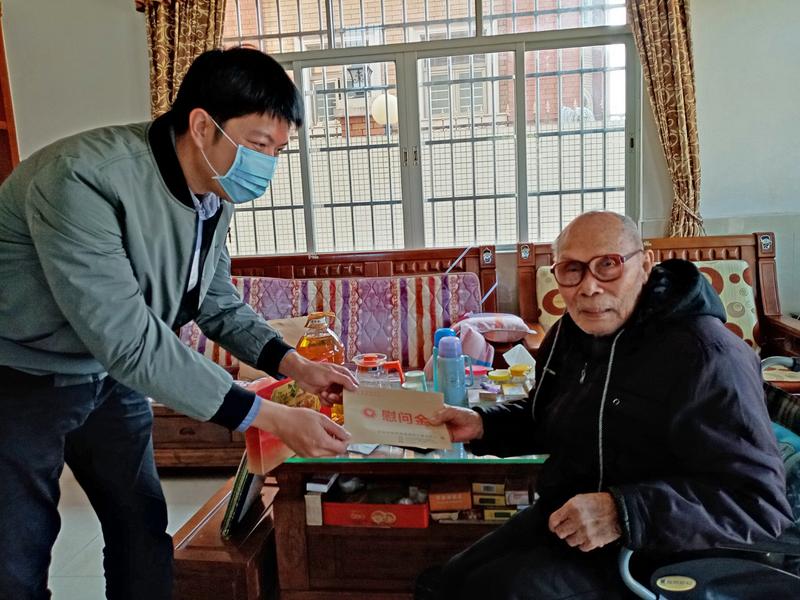 在新前進(jìn)社區(qū)在鄉(xiāng)復(fù)員軍人鐘華全和陳福大家中,何俊燁詳細(xì)了解他們的生活狀況和身體狀況,感謝他們?yōu)辄h的事業(yè)和發(fā)展所作的貢獻(xiàn),并送上慰問金和慰問品,向他們表達(dá)了誠摯的新春祝福。何俊燁表示,在鄉(xiāng)復(fù)員軍人是國家的寶貴財富,為黨和人民的解放事業(yè)做出了巨大貢獻(xiàn)。當(dāng)歷史的硝煙漸漸散盡,曾經(jīng)的勇士已經(jīng)從熱血青年變成白發(fā)老者,但歷史不會忘記,人民也不會忘記。 新春慰問活動