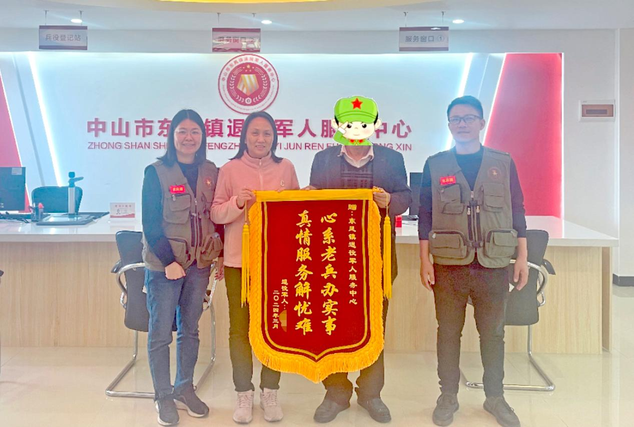 3月19日,中山市東鳳鎮(zhèn)小瀝社區(qū)退役軍人朱叔懷著感激之情,將一面印有“心系老兵辦實(shí)事,真情服務(wù)解憂難”的錦旗送到東鳳鎮(zhèn)退役軍人服務(wù)中心,感謝該中心幫助其分別成功申請到廣東省應(yīng)急救助資金和中山市臨時困難補(bǔ)助,解決了他的燃眉之急,緩解了家庭困難。