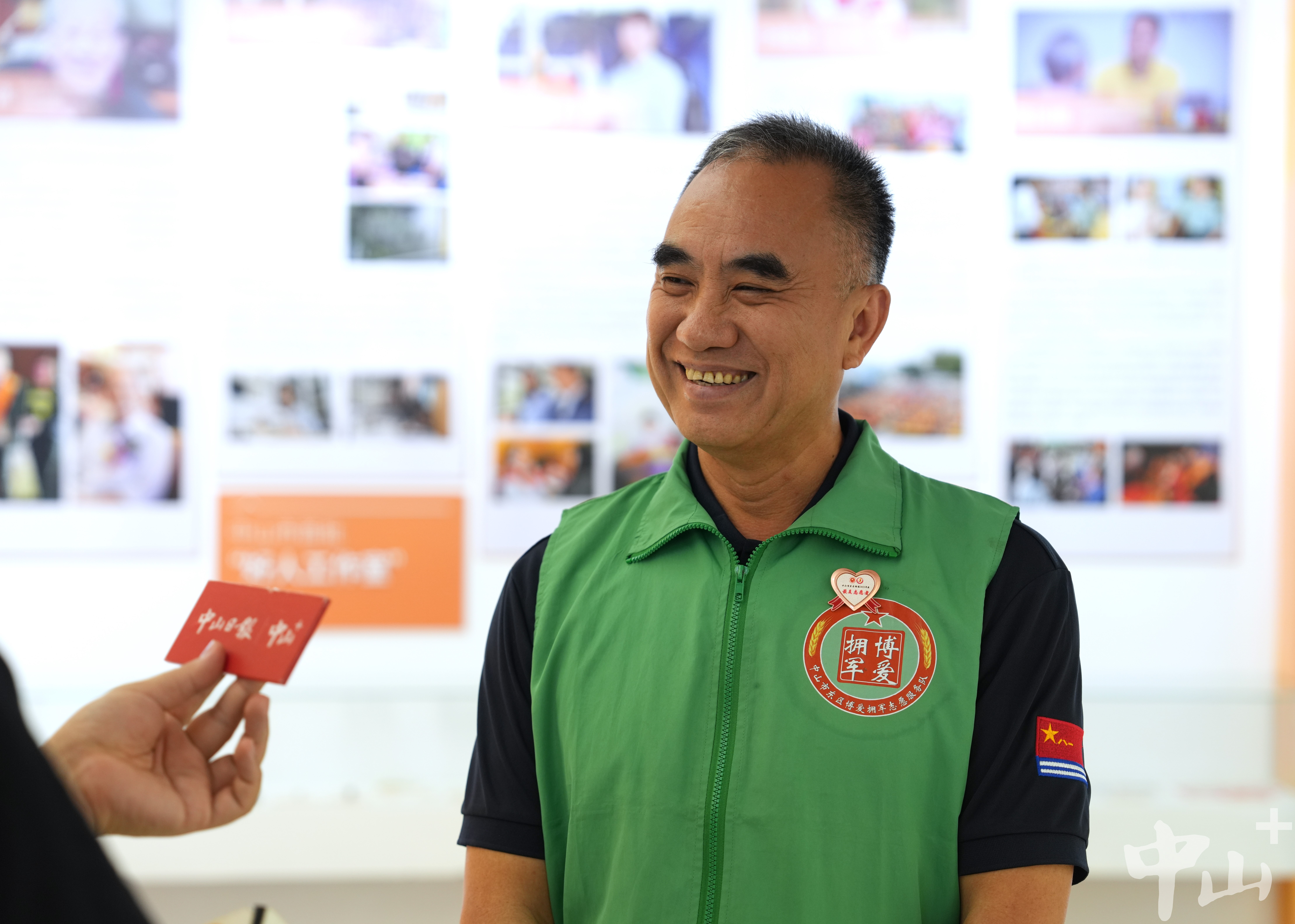 作為一名退伍軍人,李克有很多曾一起在戰(zhàn)場上出生入死的戰(zhàn)友,其中不乏已經(jīng)為國捐軀的烈士。自2007年起,他便自發(fā)組織尋找犧牲的中山籍戰(zhàn)友,先后6次帶隊前往廣西邊境的多個烈士陵園,成功尋到29名犧牲戰(zhàn)友信息,并將相關(guān)信息報送給中山市退役軍人事務(wù)局。 “我有一位戰(zhàn)友,寧愿把生的希望留給其他人,19歲不到就犧牲在戰(zhàn)場上。他們已經(jīng)離我們而去,更重要的是我們能為他們做些什么。所以逢年過節(jié)我都會看望他們的家人,把歡樂也帶給老人家?!崩羁苏f。 2016年,得知戰(zhàn)友的女兒患先天性心臟病,須進(jìn)行心肺聯(lián)合移植手術(shù),李克立即帶頭捐款,并聯(lián)系政府相關(guān)部門和電視臺,通過媒體報道讓更多愛心人士關(guān)注到了這位困難老兵。在他的多方奔走下,社會各界紛紛伸出援助之手,募集醫(yī)藥費(fèi)40余萬元,助戰(zhàn)友的女兒順利完成了手術(shù)。 牽頭成立志愿服務(wù)隊 延續(xù)志愿精神 作為一名有著30多年志愿服務(wù)經(jīng)歷的資深志愿者,李克的生活已經(jīng)與志愿分不開。他的身上始終有一抹綠色:在軍營,是守衛(wèi)國門的綠軍裝;在社區(qū),是服務(wù)群眾的綠馬甲。在人民群眾需要的地方,李克每次都沖在最前線。 “2020年疫情暴發(fā)時,很多人都響應(yīng)號召待在家里,我覺得作為一個打過仗的老兵,我總得站出來做點(diǎn)事?!睕]有過多考慮,李克第一時間加入到了志愿者隊伍中,并在社區(qū)堅守了整整60天。當(dāng)時防護(hù)物資匱乏,李克還自掏腰包托人在廣州購買了6萬元左右的防護(hù)物資,全部捐贈給了在一線抗疫的工作人員。 近年來,李克還積極捐資助學(xué)、支援災(zāi)區(qū)、扶危濟(jì)困,連續(xù)6年資助6名困難學(xué)生,為汕尾市陸河中學(xué)捐贈10套多媒體電腦設(shè)備,堅持參與無償獻(xiàn)血直到60歲。 2018年起,李克擔(dān)任文明城市巡查監(jiān)督員,奔走在街道各個路口、每條小巷,整理亂停亂放的共享單車,清理“牛皮癬”小廣告,保障街頭巷尾干凈衛(wèi)生。同一年,為更有組織地開展志愿活動,李克牽頭成立了一支以退役軍人為主導(dǎo)的東區(qū)博愛擁軍志愿服務(wù)隊,把戰(zhàn)友們凝聚在一起,共同為社會作貢獻(xiàn)。如今,這支志愿服務(wù)隊已從最初的8名成員,逐漸壯大至400多人,成為服務(wù)社會的一支生力軍。 講好好人故事,傳承紅色文化 4月19日上午,記者在“中山好人館”見到了正在擔(dān)任“輪值館長”的李克。從去年1月開始,他每個月都參與輪值,先后為140多場活動、1萬多名市民群眾義務(wù)講解博愛之城的凡人善舉、好人大愛。  正在中山好人館輪值的李克。記者 劉萬杰 攝