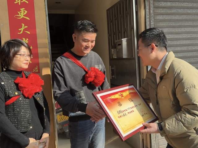 新年伊始,喜報頻傳。近日,沙溪鎮(zhèn)陸續(xù)收到多份立功受獎喜報,目前已收悉10位現(xiàn)役軍人榮獲2025年度“四有”優(yōu)秀士兵(軍官)。為弘揚擁軍優(yōu)屬光榮傳統(tǒng),營造“一人參軍、全家光榮”的濃厚氛圍,自1月6日起,沙溪鎮(zhèn)黨委、鎮(zhèn)政府領(lǐng)導率領(lǐng)退役軍人服務(wù)中心、武裝部及各村(社區(qū))負責人組成慰問組,分批登門為優(yōu)秀士兵家屬送上滿載榮譽的喜報和新春祝福。 慰問現(xiàn)場,慰問組為軍屬佩戴光榮紅花,宣讀喜報,詳細介紹士兵在部隊的優(yōu)異表現(xiàn),對軍屬們默默支持國防事業(yè)、鼓勵親人建功軍營表示衷心感謝。接過喜報的家屬們臉上洋溢著自豪與喜悅,表示將繼續(xù)做好堅強后盾,叮囑孩子在部隊安心服役、再立新功。