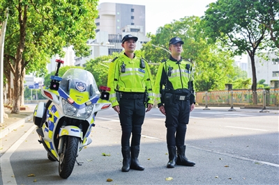 ▲鐵騎隊員李劍鋒(左)、繆輝航(右)退伍從警后繼續(xù)發(fā)光發(fā)熱。