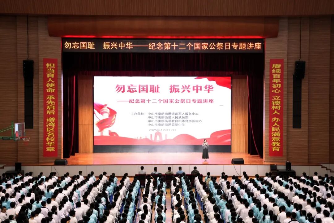 以史為鑒,砥礪前行。在第十二個南京大屠殺死難者國家公祭日即將到來之際,12月12日下午,中山南朗街道人民武裝部、退役軍人服務(wù)中心聯(lián)合南朗街道教育和體育事務(wù)中心在中山紀(jì)念中學(xué)教育集團云衢中學(xué)開展愛國主義教育,700余名師生齊聚一堂,緬懷遇難同胞、傳承愛國精神。