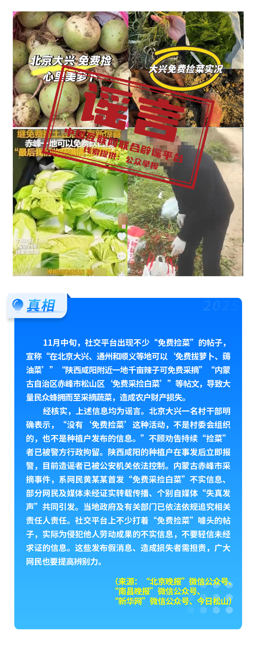 此外,“免費(fèi)撿菜”傳言在多地蔓延,北京大興、內(nèi)蒙古赤峰、陜西咸陽等地,均有群眾因不實(shí)信息誤導(dǎo)涌入農(nóng)田哄搶,導(dǎo)致農(nóng)戶財(cái)產(chǎn)受損;“充‘劣質(zhì)電’會(huì)導(dǎo)致新能源汽車自燃”的說法,毫無科學(xué)依據(jù),實(shí)為造謠者為博流量惡搞。另有“高見觀潮”“象視汽車”“987瘋狂奶爸”等賬號(hào)在多平臺(tái)編發(fā)涉汽車行業(yè)的虛假信息,惡意抹黑詆毀汽車企業(yè)、汽車產(chǎn)品,損害汽車行業(yè)發(fā)展形象。