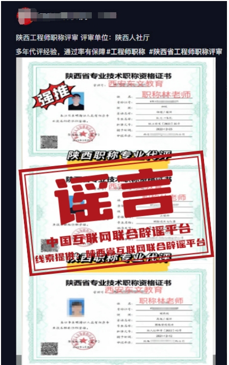 謠 言 只要繳納高額費(fèi)用,陜西職稱評審“包過”?