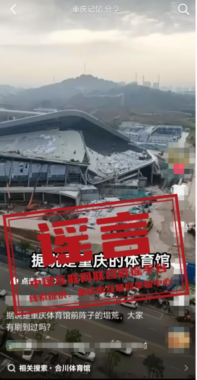謠 言 網(wǎng)傳“重慶體育館坍塌”?