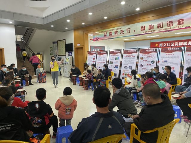 12月26日,大涌鎮(zhèn)南文社區(qū)一片熱鬧,鼓聲此起彼伏。100多名群眾在南文社區(qū)黨群服務(wù)中心了解禁毒知識(shí),體驗(yàn)“鼓圈”文化。
