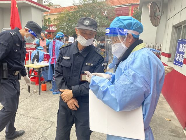 “疫情就是命令、防控就是責(zé)任”。三鄉(xiāng)鎮(zhèn)禁毒社工穿上隔離防護(hù)衣在核酸檢測采樣點指引居民有序排隊,耐心講解核酸檢測流程,協(xié)助居民完成粵核酸個人資料填寫。同時,安撫群眾因排隊時間長而產(chǎn)生的不良情緒,爭取群眾對疫情防控核酸檢測工作的支持和理解,也利用此時間間隙向前來做核酸檢測的群眾傳達(dá)如何預(yù)防和杜絕毒品,有力提高了居民的禁毒意識和防疫情能力。